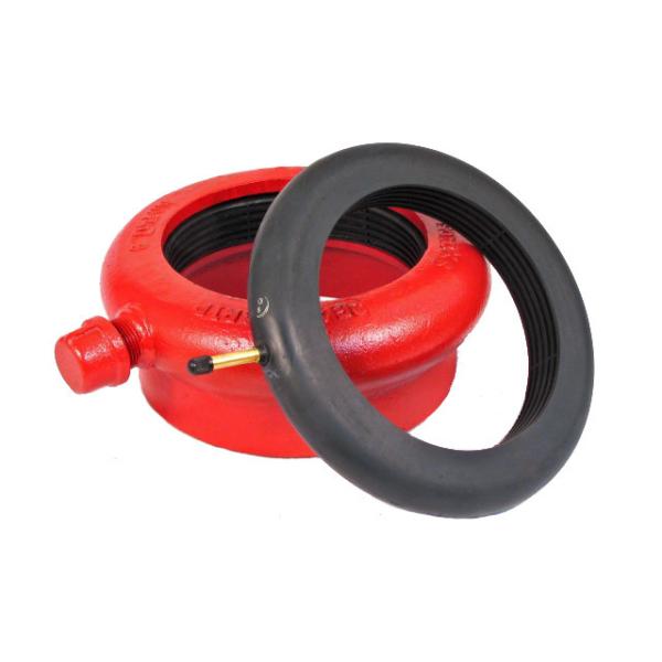 Air Grip Unions are for low-pressure fluid or mud suction and return lines. A leak tight seal is achieved with rig supplied compressed air, even if the connecting pipe is not perfectly aligned. The oil and abrasion resistant NBR pneumatic tube can be inflated up to 200 psi against the outside diameter of the connecting pipe, speeding field set up and eliminating the need for low-pressure flanged connections.